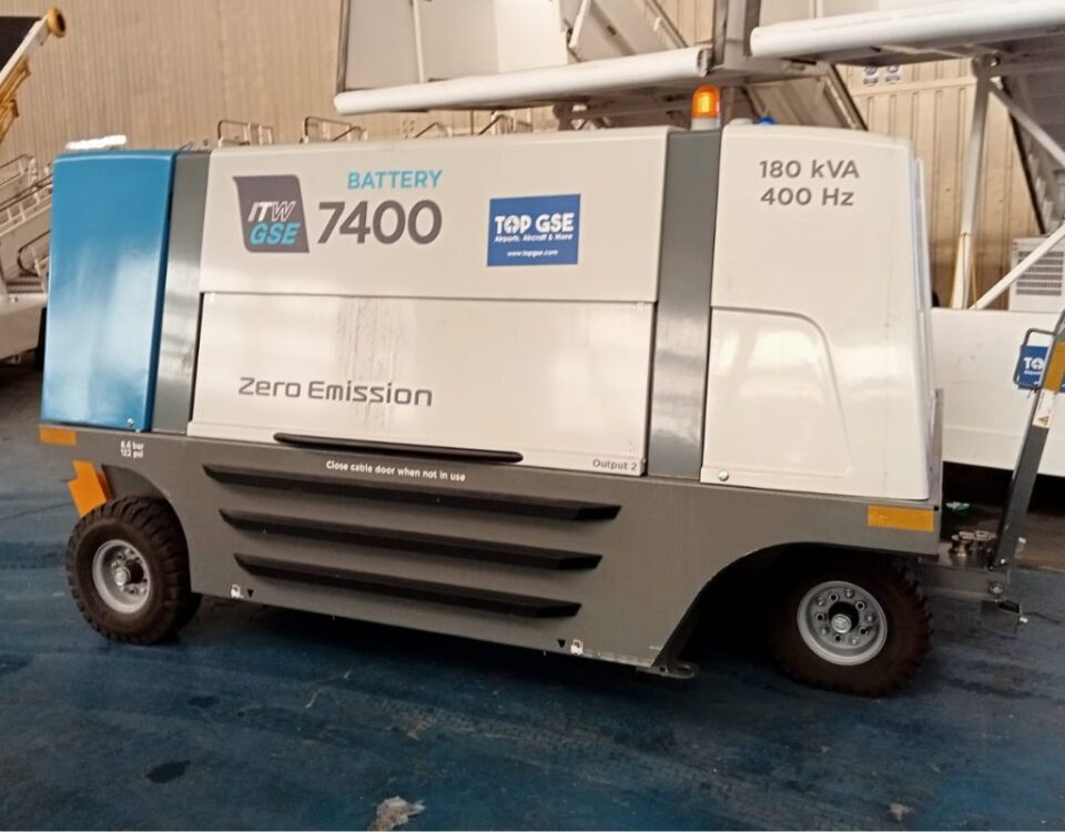 eGPU de batería 7400 de ITW GSE, un concepto completo de tecnología limpia. Ideal para puestos remotos sin 400 Hz fijos y hangares. La familia eGPU
